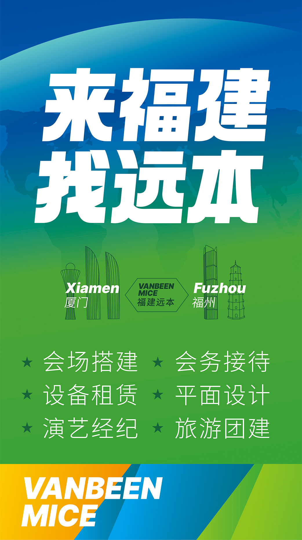 廈門遠(yuǎn)本成立于2013年,是一家集策劃設(shè)計(jì)、落地搭建以及會議接待等全案服務(wù)的DMC公司。公司擁有LED屏幕、燈光音響、木作工廠等專業(yè)舞美設(shè)備,擁有一批專業(yè)穩(wěn)定的策劃設(shè)計(jì)和會務(wù)接待團(tuán)隊(duì),能夠快速、精準(zhǔn)地為客戶提供優(yōu)質(zhì)的策劃、設(shè)計(jì)、搭建、接待等服務(wù)。公司已服務(wù)過華為、阿里、麥當(dāng)勞、中國移動、埃克森美孚、興業(yè)銀行、招商銀行、華潤三九、齊魯制藥、萬邦制藥等國內(nèi)外知名企業(yè),并成功入選中國國旅、中旅、康輝國旅、錦江國旅、中智商展、墨馬傳媒等國內(nèi)知名PCO公司供應(yīng)商庫。